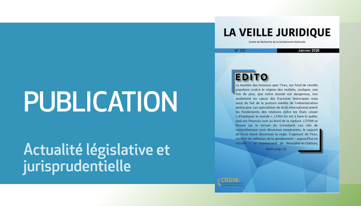 20 février 2026La contrainte temporelle pesant sur l'enquêteur de gendarmerie appréhendée sous l'angle de la déontologie gendarmique : Marc-Antoine Granger publie une note sous un arrêt du Conseil d'État du 11 juillet 2025. -