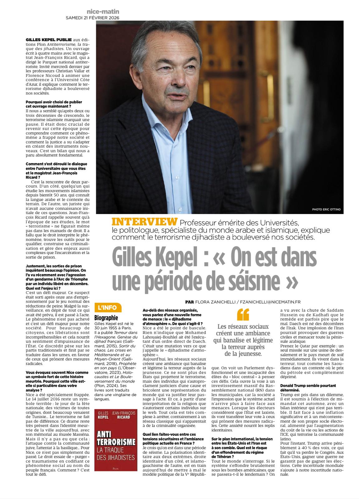 Le 18 février 2026, le CERDACFF accueillait le professeur Gilles Kepel pour une conférence consacrée à la lutte antiterroriste, organisée par les professeurs Christian Vallar et Florence Nicoud dans le cadre du Master 2 Sécurité intérieure.