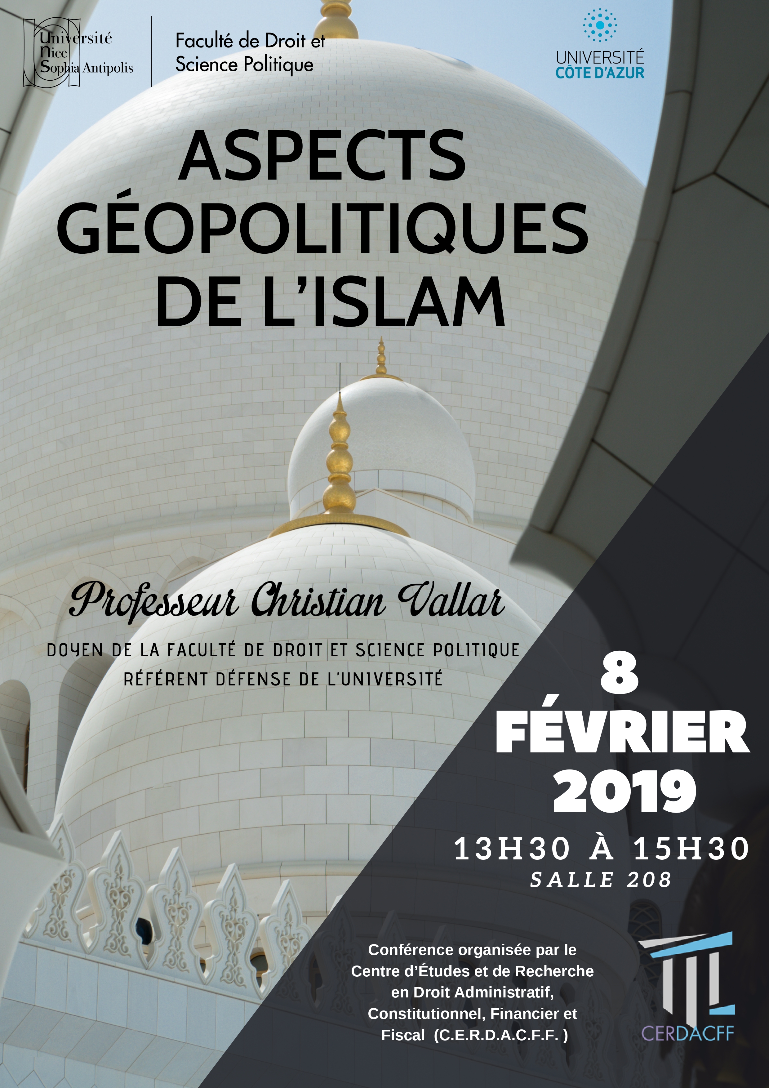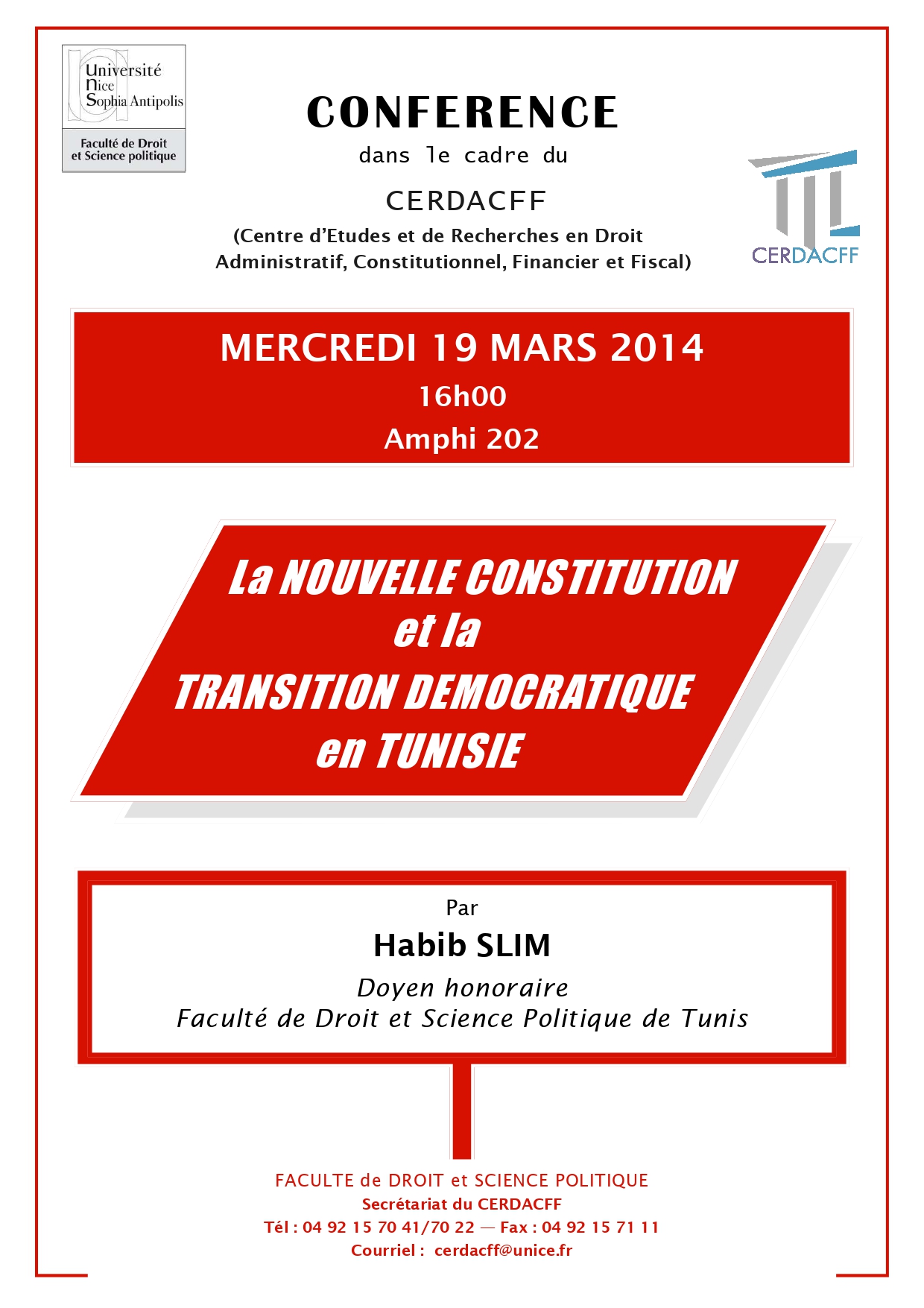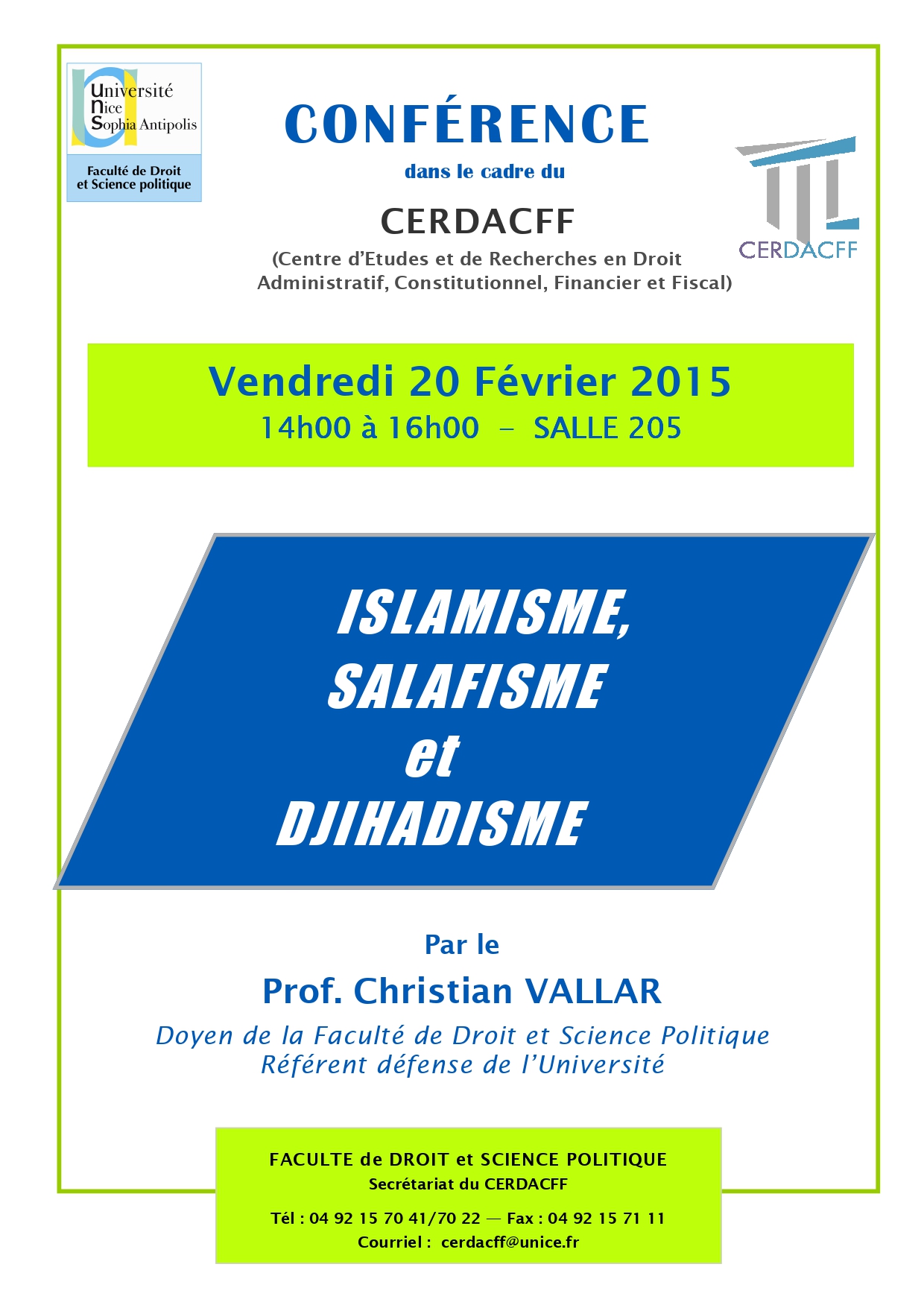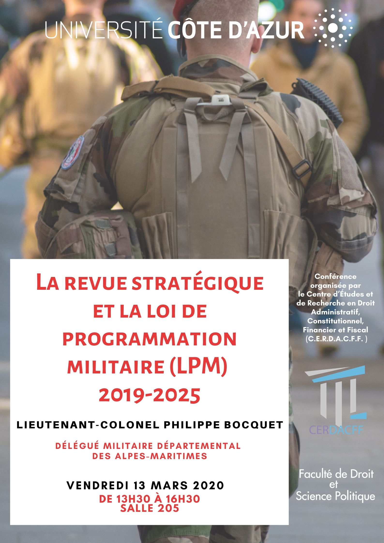 Conférence organisée dans le cadre du Master 2 Sécurité intérieure (présentée par le Professeur Christian Vallar, Florence Nicoud, maître de conférences HDR et Riadh Jaidane, avocat au Barreau de Nice et chercheur associé au CERDACFF )