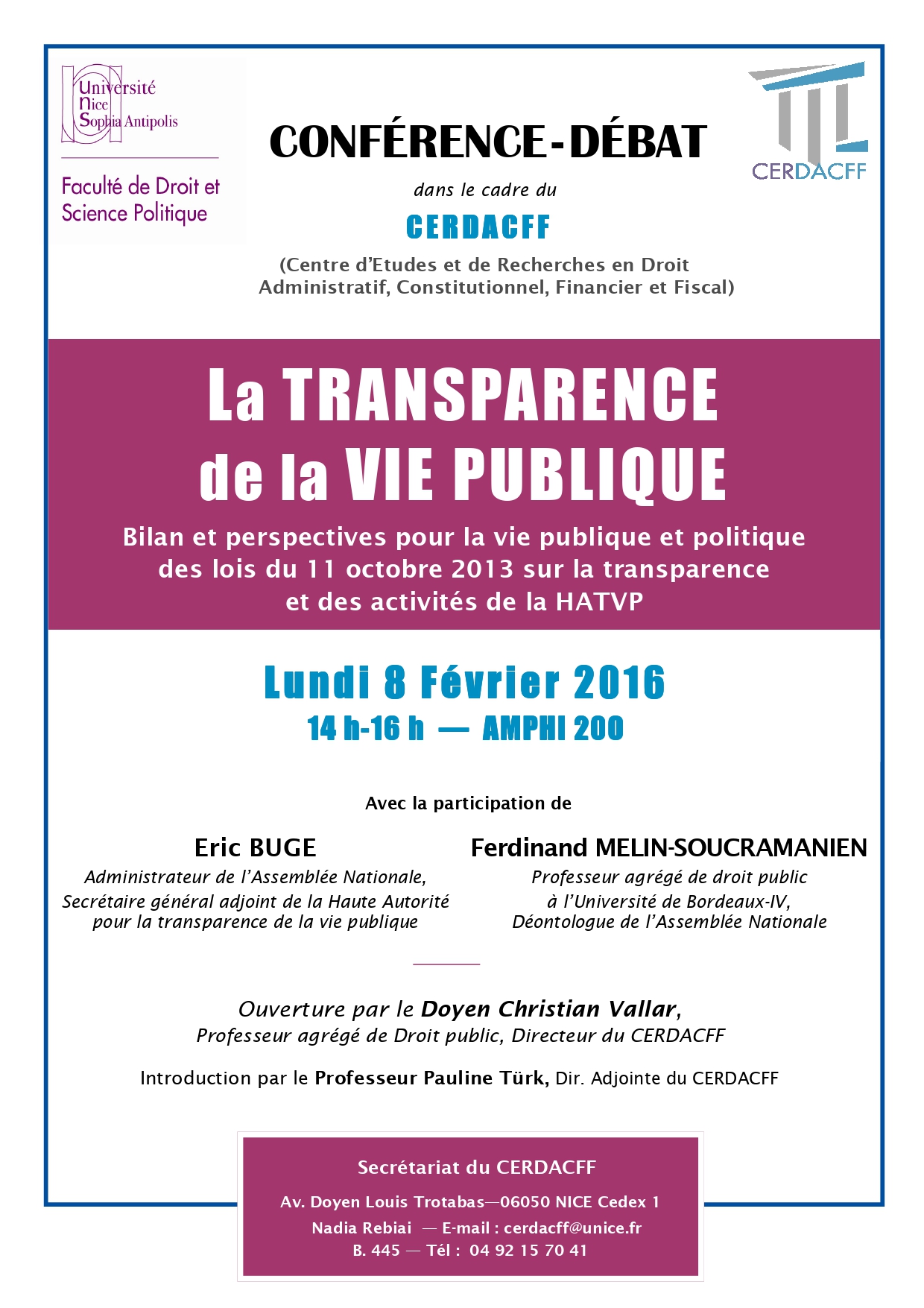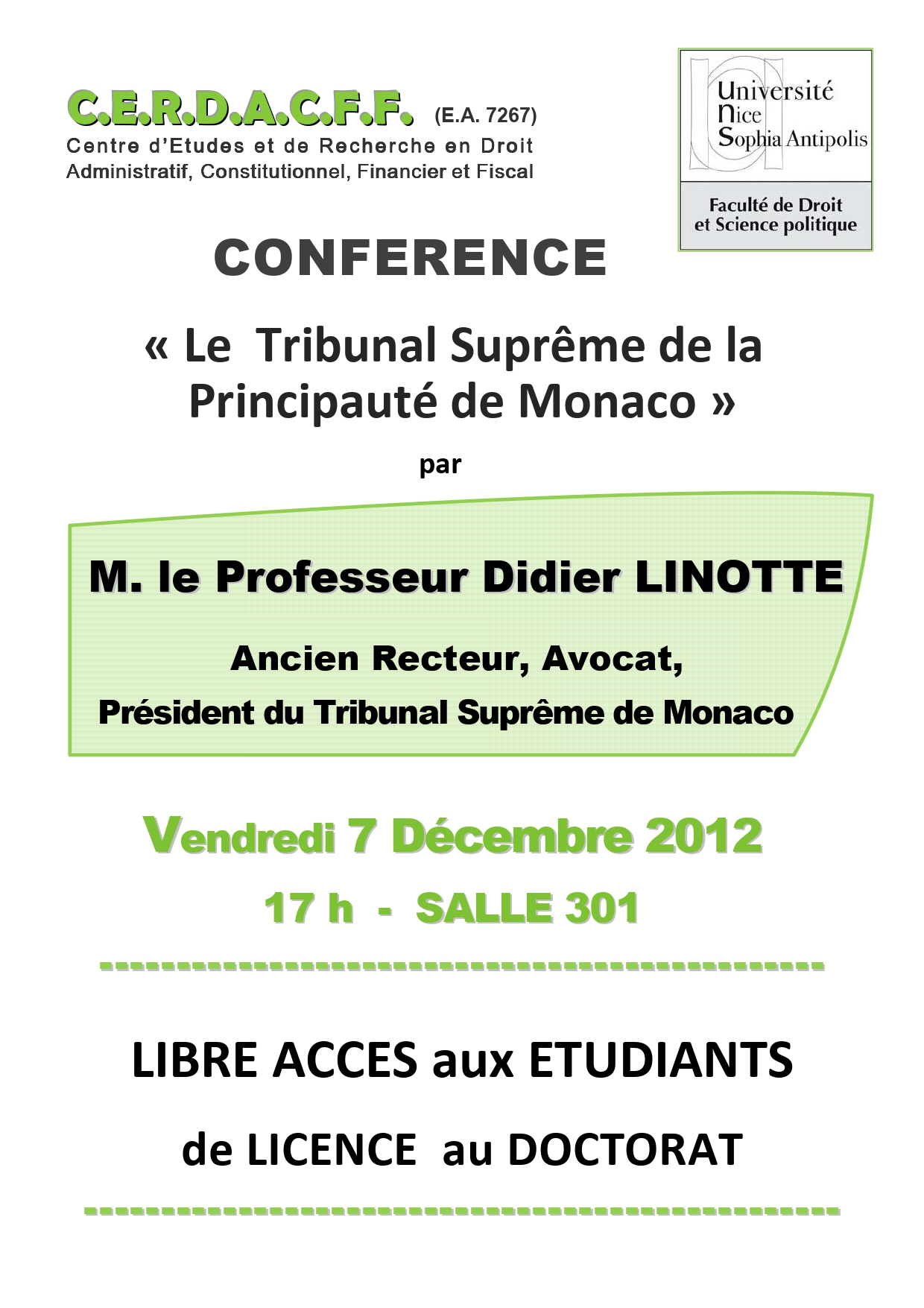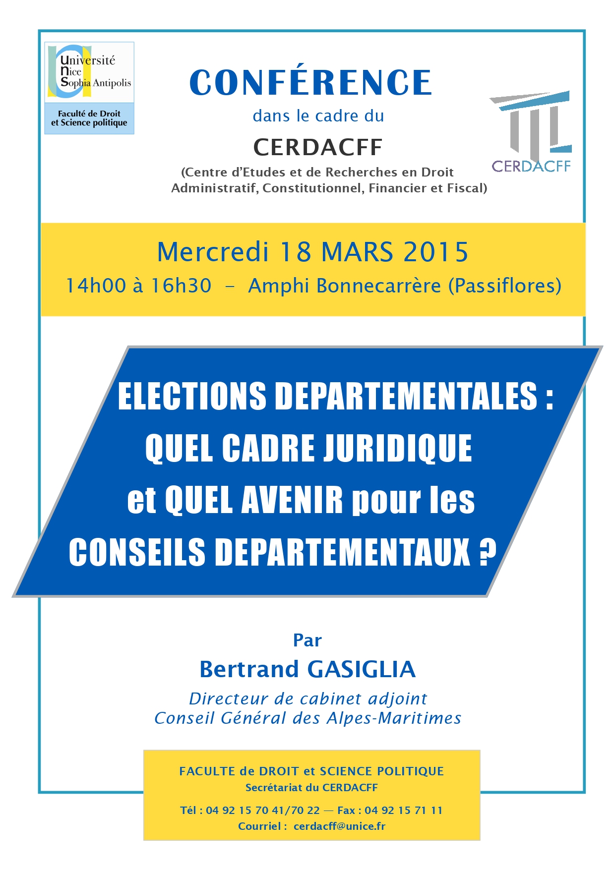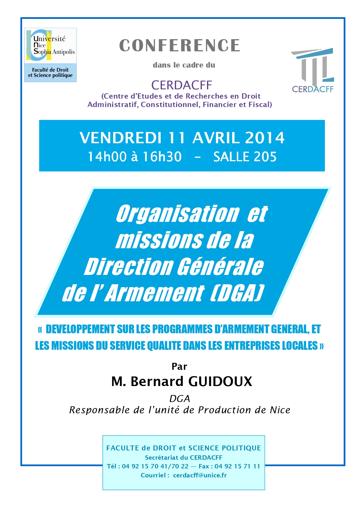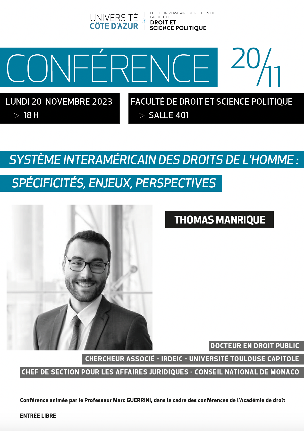 Conférence organisée dans le cadre de la Licence Droit (présentée par le Professeur Marc Guerrini)