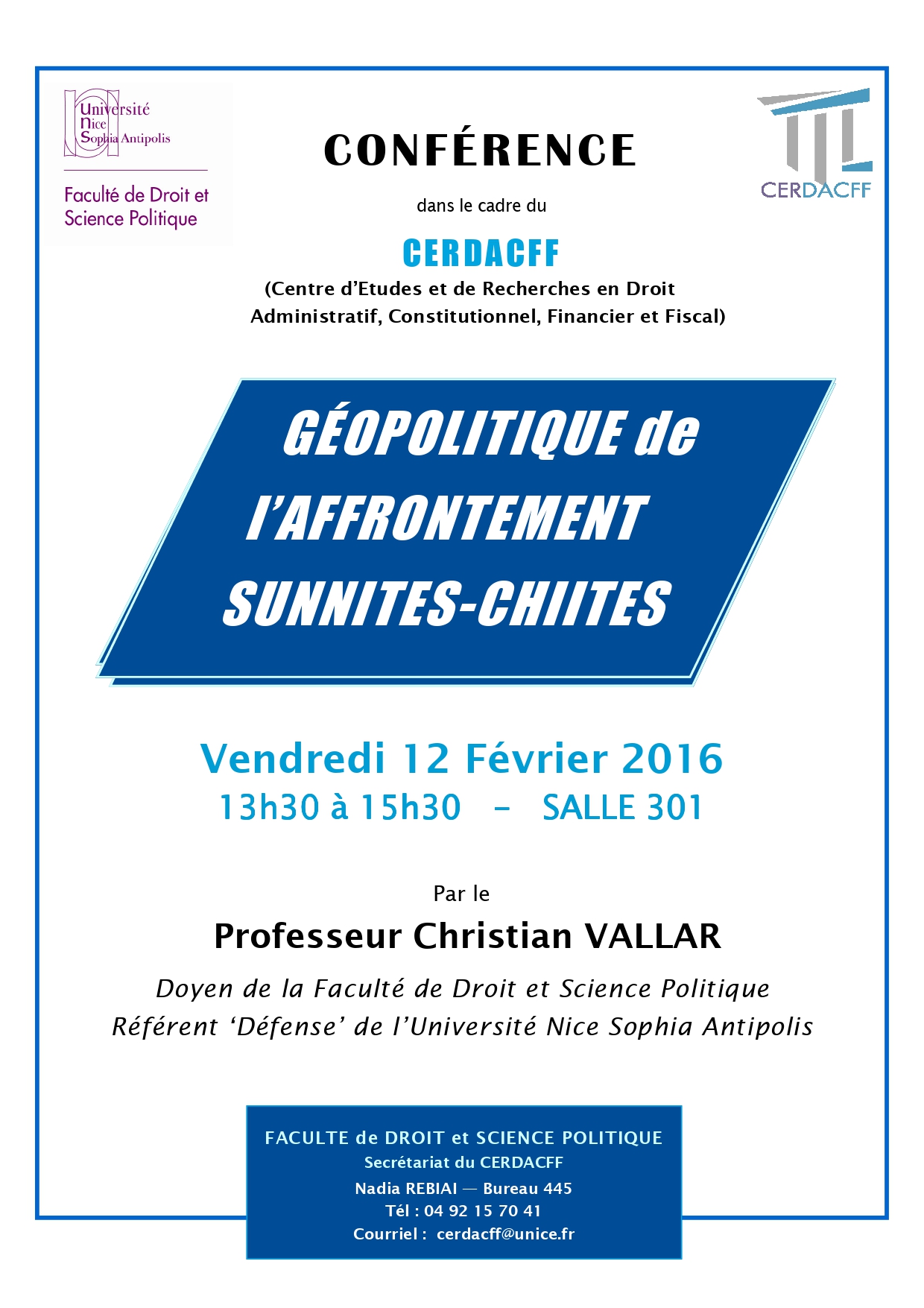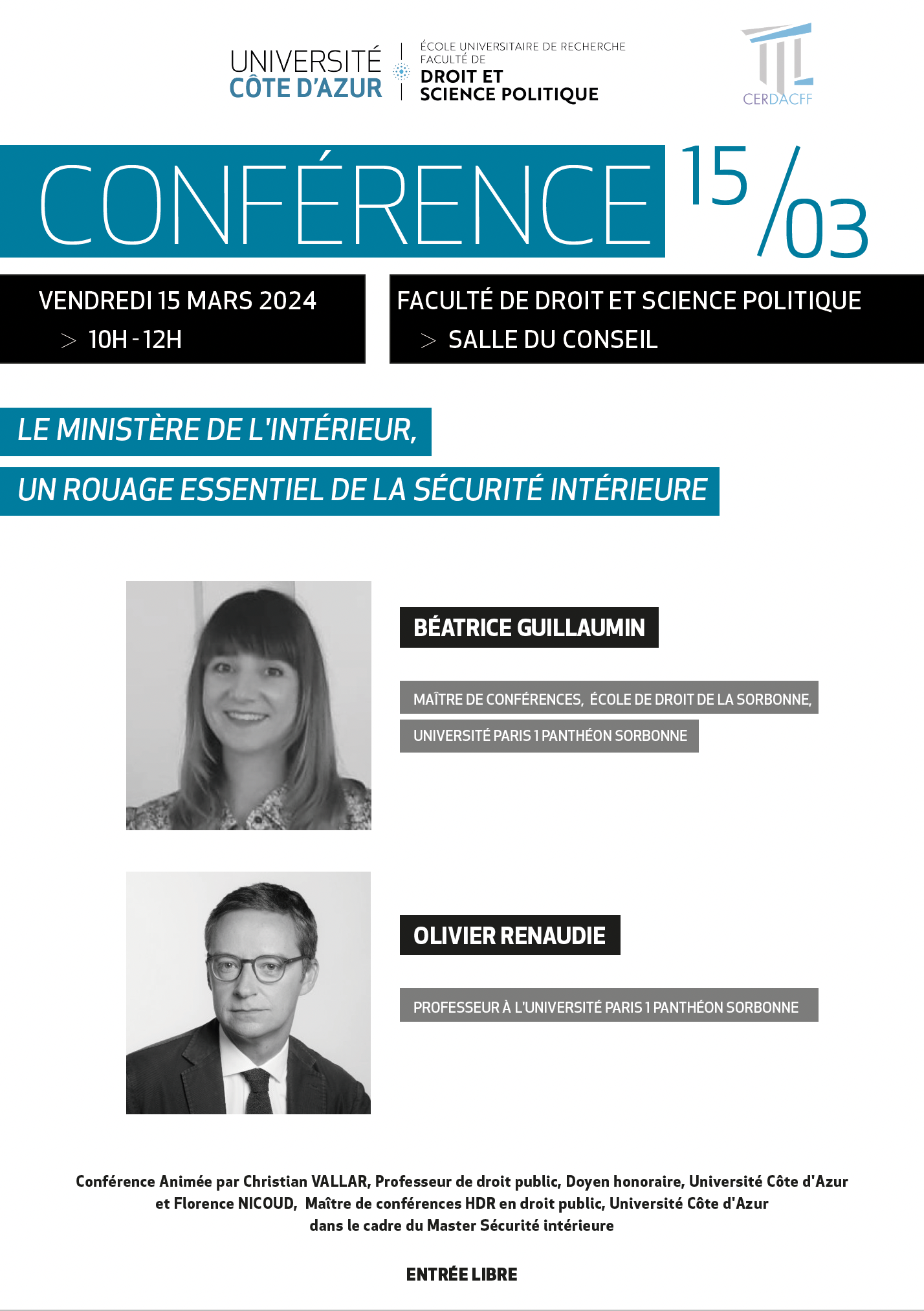 Conférence organisée dans le cadre du Master 2 Sécurité intérieure, co-dirigé par le Professeur Christian Vallar et le Professeur Florence Nicoud