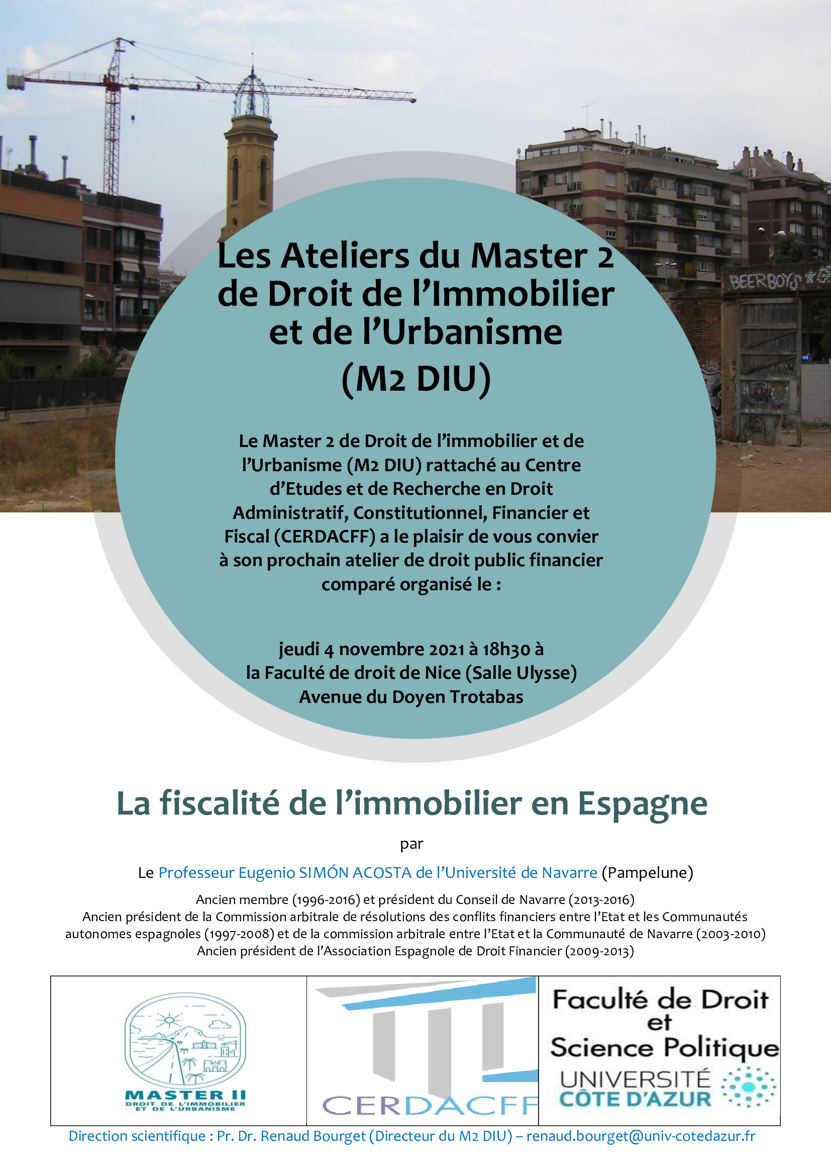 Conférence organisée dans le cadre des Ateliers juridiques du Master 2 Droit de l'Immobilier et de l'Urbanisme (M2 DIU) sous la direction scientifique du Professeur Renaud Bourget, directeur du M2 DIU